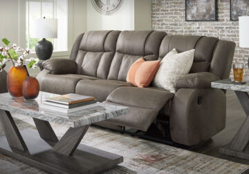 This sofa set tees you up to catch up on streaming or enjoy the latest game without breaking the bank. Its easy reclining motion and inviting stitched details craft a stylish seat that keeps you utterly at ease. And with a versatile neutral faux leather, this sofa set knocks contemporary comfort out of the park.