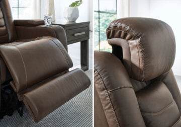 One-touch power control with adjustable positions, Easy View™ adjustable headrest and zero-draw USB port. Zero-draw technology only consumes power when the USB receptacle is in use. Zero-gravity mechanism allows optimum reclining comfort with infinite reclining positions at the touch of a button. Easy View™ adjustable headrest puts your head and neck in optimum position for reading or watching TV even if you’re fully reclined. Extended ottoman for enhanced comfort. Corner-blocked frame with metal reinforced seat. Attached cushions; high-quality foam cushions wrapped in poly fiber. 100% top grain leather covers inside areas such as the back, seat and arm cushions; skillfully matched faux leather covers the remaining areas. Due to its natural origin, real leather can show individual characteristics such as healed scars, growth marks, grain variation and shade variation. Natural variations make each hide unique and do not detract from the wearing qualities of leather. Storage armrests with 2 cup holders; center console with 2 cup holders and hidden storage. USB charging.