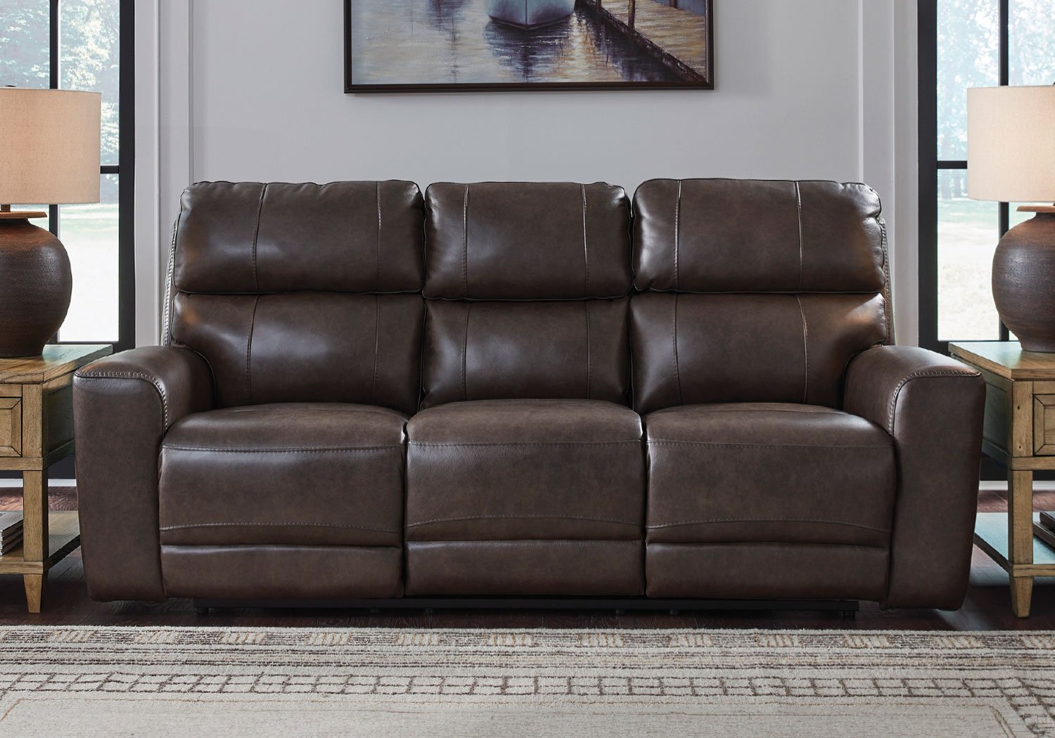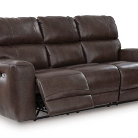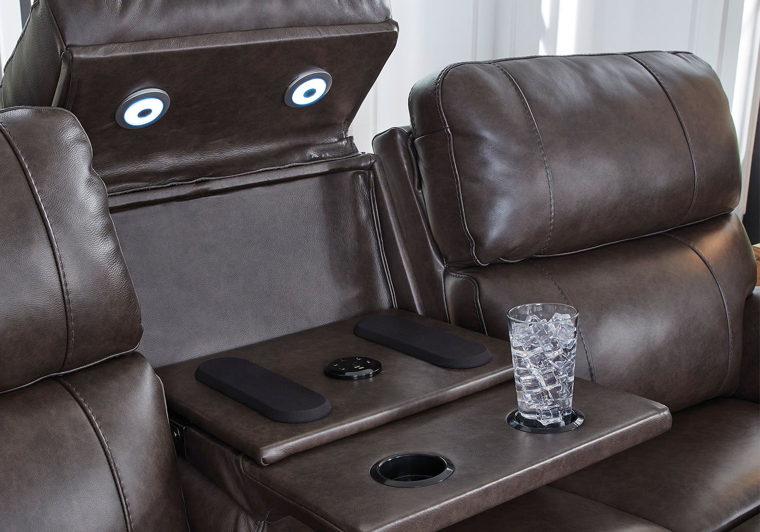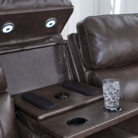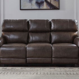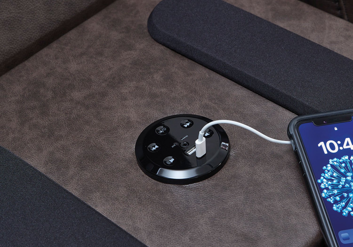 Versatile style teams up with everyday convenience to create this power reclining sofa. Settle into the sleek leather seating area and effortlessly recline with one-touch controls. Need some extra ambiance? Wireless speakers in the drop-down table make entertainment more immersive. And with the addition of USB charging, you can keep go-to devices close as you lounge. Outfitted in a goes-with-anything neutral hue, it’s the perfect blend of chic transitional aesthetics and modern function.