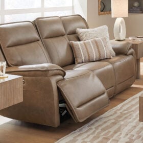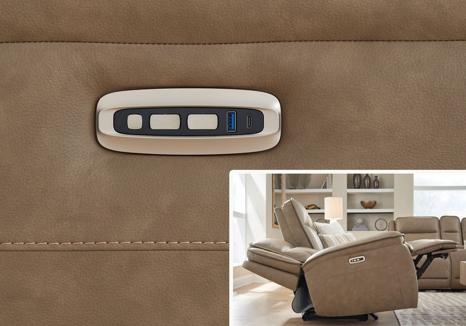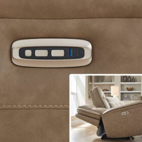 Looking for modern comfort that makes a subtle statement? With striking design details and expertly matched leather and faux leather upholstery, this sleek power reclining sofa delivers luxury without the fuss. The Zero³ reclining requires minimal space between wall and chair back while delivering fully supported, fully reclined comfort at the touch of a button. Its generous padding feels as good as it looks, and the adjustable headrests and USB charging are pure indulgence. It’s the perfect blend of sophisticated style and innovative comfort.