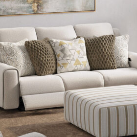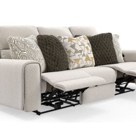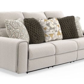 Transform your living space with this Series Collection, where modern style meets everyday comfort. Designed with power reclining options, this Series offers effortless relaxation and lasting support. Upholstered in soft, durable polyester in oatmeal color, this sofa brings a warm, inviting touch to any room. With clean lines, plush seating, and thoughtful functionality, this Series Collection is the perfect blend of contemporary design and cozy comfort.