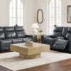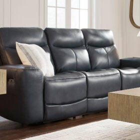 Prepare to be moved. This power reclining sofa combines sleek modern design with all the soothing features you’ve been dreaming of. Wrapped in blue-hued leather and faux leather for affordable luxury, this highly contemporary piece with cozy scoop seating suits your relaxed vibe. Infinite reclining and headrest positions are yours at the touch of a button. It’s the perfect choice for anyone who wants their comfort with a side of style.