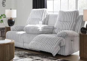 We don’t know about you, but one look at this power reclining sofa makes us want to settle in and never leave. There’s so much to love—we’ll start with its cozy corduroy and stylish contemporary design. Did we mention the generous seat and tall back, specially crafted to provide extra support and comfort for broader and taller individuals? Let’s not forget its one-touch reclining and pillowy cushions, offering easy and instant relaxation that feels right at home. Plus the middle seat’s drop-down table is indulgently convenient.