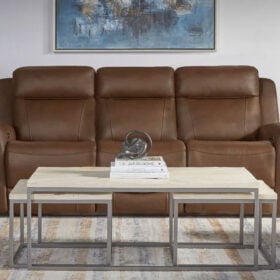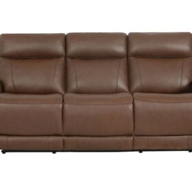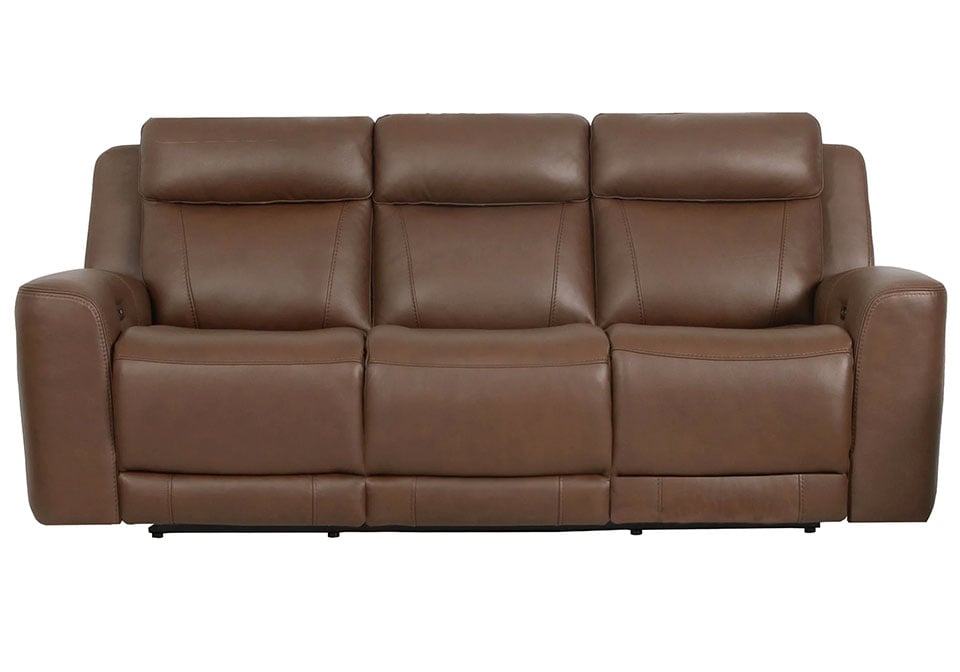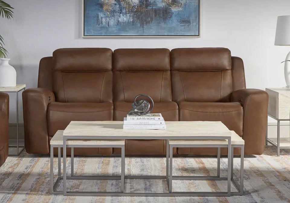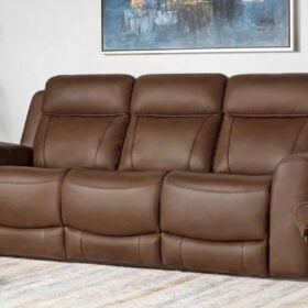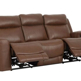 Upholstered in smooth, in Genuine leather. Power recline & power headrests (P2 functionality). Deep, supportive seating with plush armrests and back cushions. Built-in center console with cup holders and hidden storage. Sleek modern design with a neutral tone that suits any décor. Ideal for media rooms, living rooms, and open-concept spaces. Due to its natural origin, real leather can show individual characteristics such as healed scars, growth marks, grain variation and shade variation. Natural variations make each hide unique and do not detract from the wearing qualities of leather.