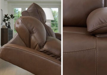 Get ready to indulge in pure bliss. With this power reclining sofa, you’ll experience unparalleled comfort as you effortlessly recline. The Easy View™ adjustable headrests put you in the driver’s seat for optimal TV viewing. And the sofa’s sumptuous upholstery and impeccable stitching bring an ultra-cool touch—perfect for your modern or casual setting.