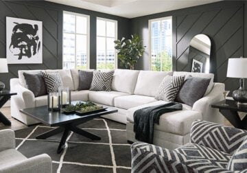 Refined design, reimagined to fit your busy lifestyle. This sectional with chaise impresses in high-traffic areas with its neutral hue and contemporary character. Stressed about upkeep with kids and pets in the house? You won’t need to sweat spills and messes, because the performance fabric is easy to clean and machine washable.