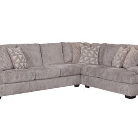 Deep, supportive cushions, durable textured upholstery, spacious seating, neutral design, sturdy frame construction, plush accents, wide track arms, low-profile legs, versatile sectional layout for flexible room placement.