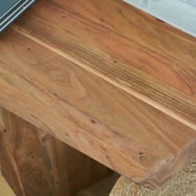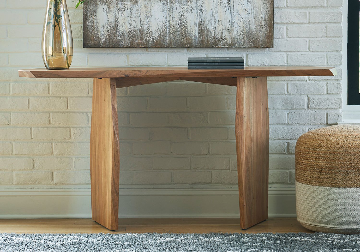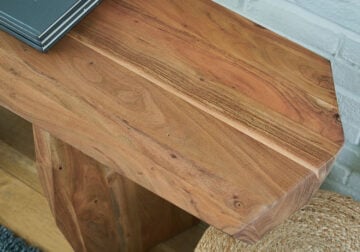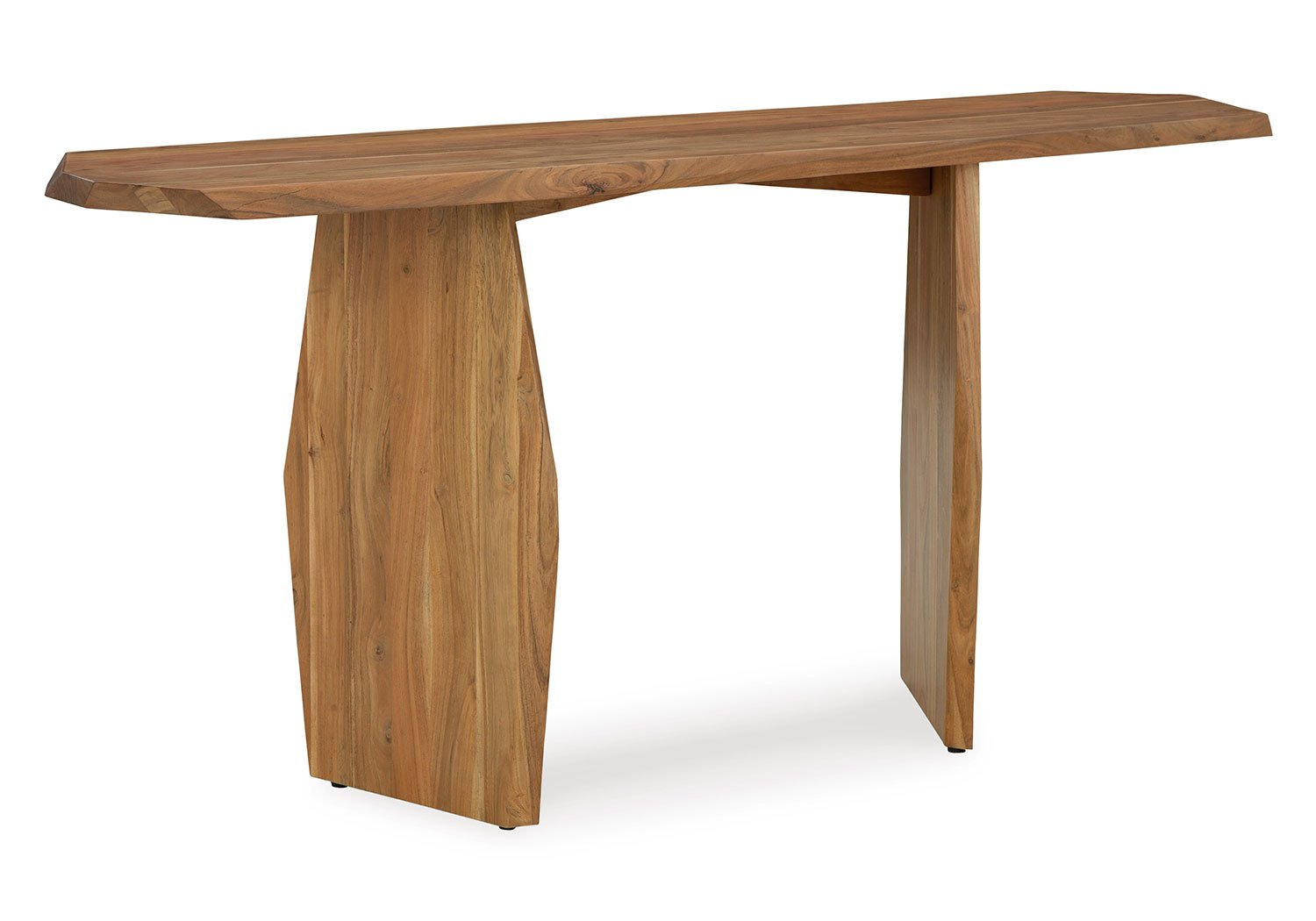 In a word … wow. With its irregularly shaped top and legs, this console table is a spectacular study in contemporary style. The imaginative piece brings nature indoors, with solid wood in a relaxed natural finish that appeals to your earthy sensibilities. Make this innovative table yours by adorning it with handsome decor in the entryway or behind your sofa.