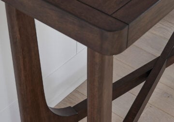 Master the art of casual contemporary design with the Korestone sofa table. Its softly rounded wood frame top pairs perfectly with an eye-catching double wishbone base and a rich brown finish for a decidedly here and now vibe. Talk about the ideal spot for decor, plants and more.