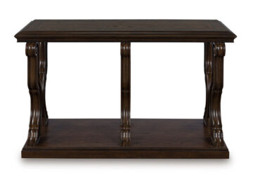 Lavish, luxurious living is within reach when you add this sofa table to your living room. Recalling a classic sense of refinement, its elegant scrolled legs make a beautifully bold statement. Ornate details on the apron add an air of opulence to the regal dark brown finish. The look is timeless. The feel? Right at home.