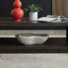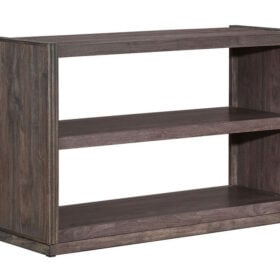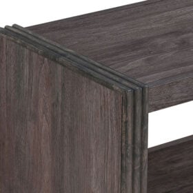 Wood: Rubberwood Solids w/ Melamine. Finish: Caffe. Raised Reeded End Panel Frame. Plinth Style Base. Fixed Wood Center Shelf. Bottom Shelf for Storage & Display. Bottom Shelf for Storage.