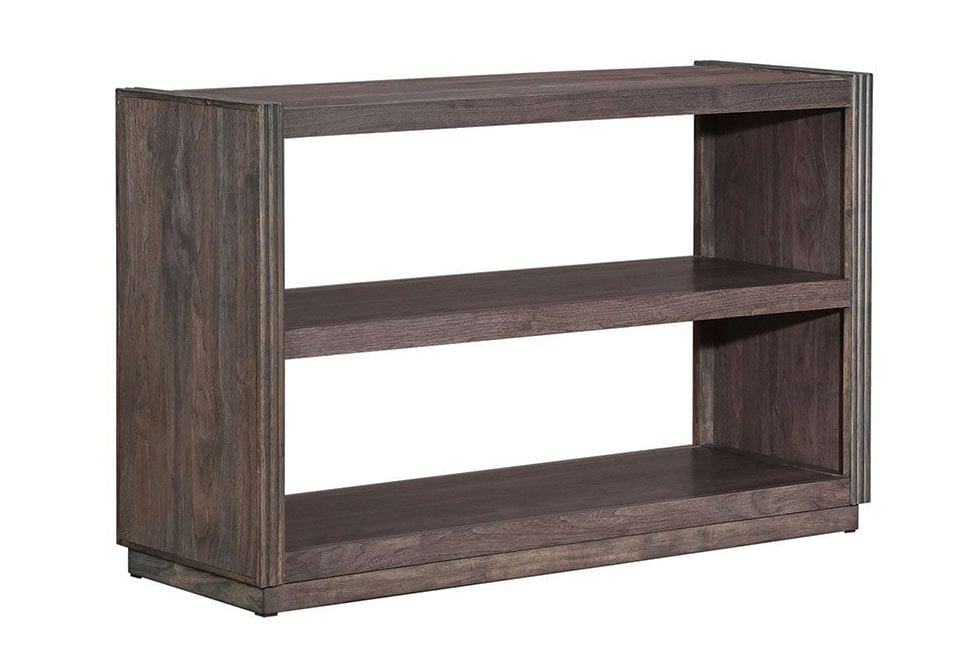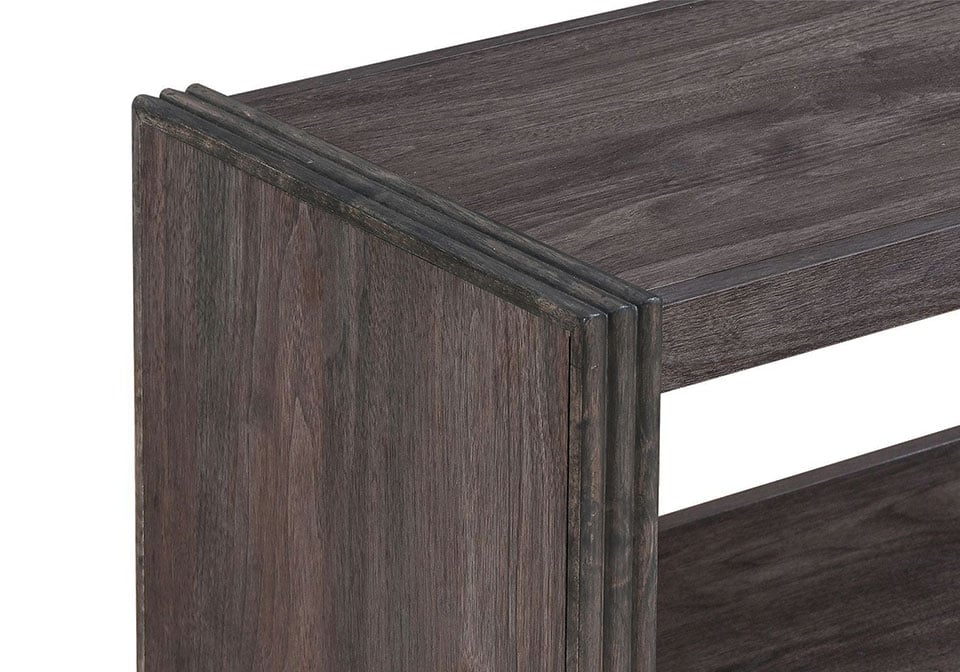 Elevate your living space with the Modern Edge Sofa Table, where form meets function in a bold contemporary design. Crafted of Rubberwood solids with Melamine in a rich Caffe finish, this table features raised end panels with reeded pilasters that add depth and texture. The pilasters flow seamlessly into fixed middle and bottom shelves, offering ample space for stylish storage and display. A sleek plinth-style base grounds the piece, continuing the clean lines and modern aesthetic of the collection.