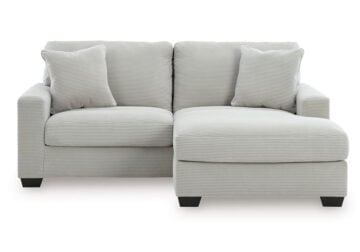 The crisp neutral hue and striking design details of this Series create a living room that expertly reflects your modern taste. For irresistibly cool textural appeal, the ultra-soft fabric is enhanced by a small-scale corded look. With a clean-lined silhouette complete with track arms, this sofa chaise allows you to take a trend-right approach to everyday living.