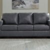 Corner-blocked frame. Loose seat cushions; attached boxed back cushions. High-resiliency foam cushions wrapped in thick poly fiber. Genuine leather typically covers inside areas such as the back, seat and arm cushions; skillfully matched faux leather covers the remaining areas. Corrected grain leather; two-tone sauvage effect enhances the depth of the color while replicating the effect of a wax pullup leather. Due to its natural origin, real leather can show individual characteristics such as healed scars, growth marks, grain variation and shade variation. Natural variations make each hide unique and do not detract from the wearing qualities of leather. Exposed feet with faux wood finish. Platform foundation system resists sagging 3x better than spring system after 20,000 testing cycles by providing more even support. Smooth platform foundation maintains tight, wrinkle-free look without dips or sags that can occur over time with sinuous spring foundations.