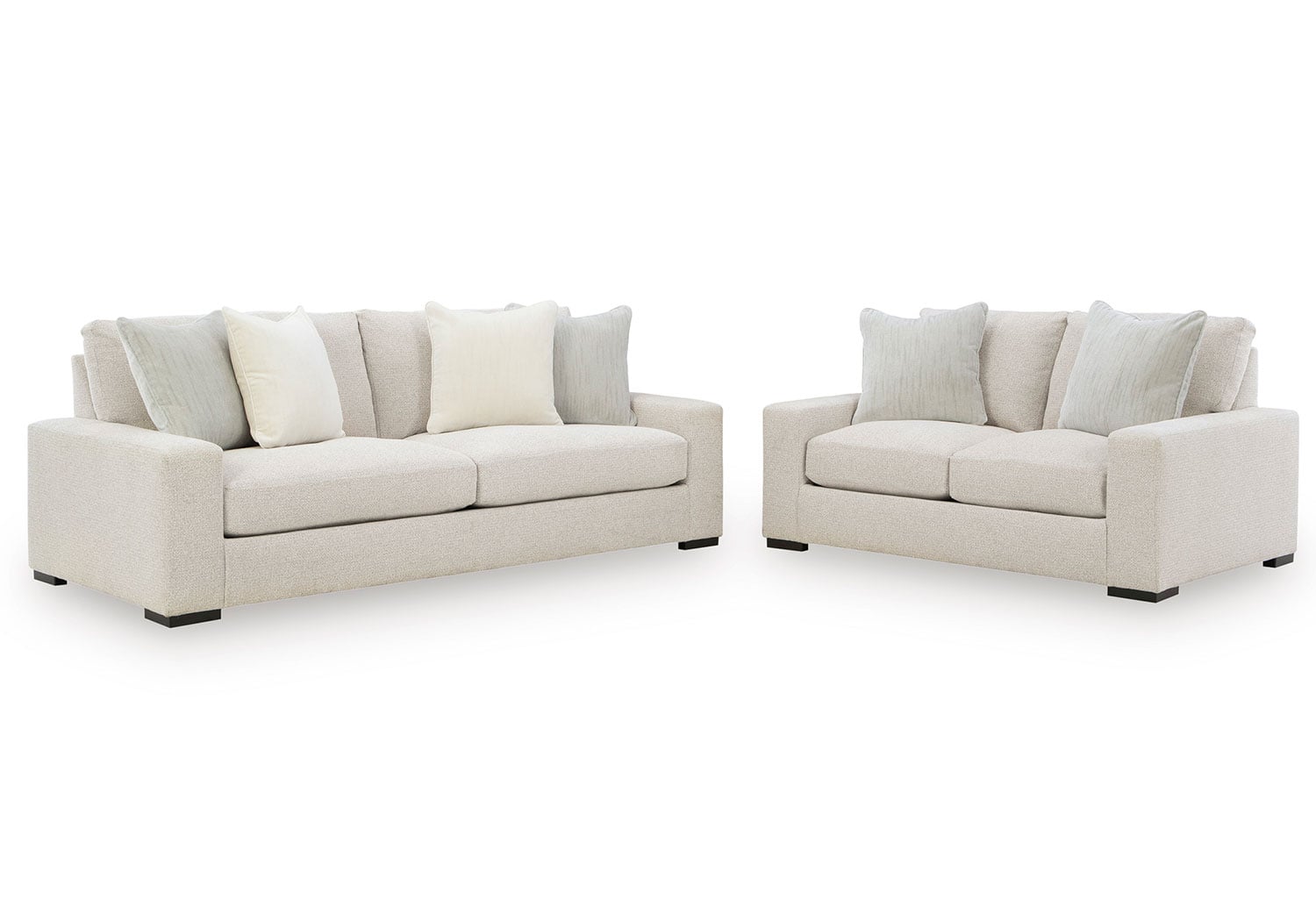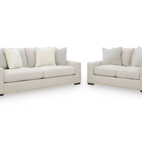 Reinforced frame provides added stability. Reversible seat and back cushions. High-density foam cushions wrapped in feather-fiber blend jacket. Pillows with feather-fiber blend. Polyester upholstery. Non-skid, low-profile accent legs with faux wood finish. Platform foundation system resists sagging 3x better than spring system after 20,000 testing cycles by providing more even support. Smooth platform foundation maintains tight, wrinkle-free look without dips or sags that can occur over time with sinuous spring foundations.