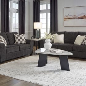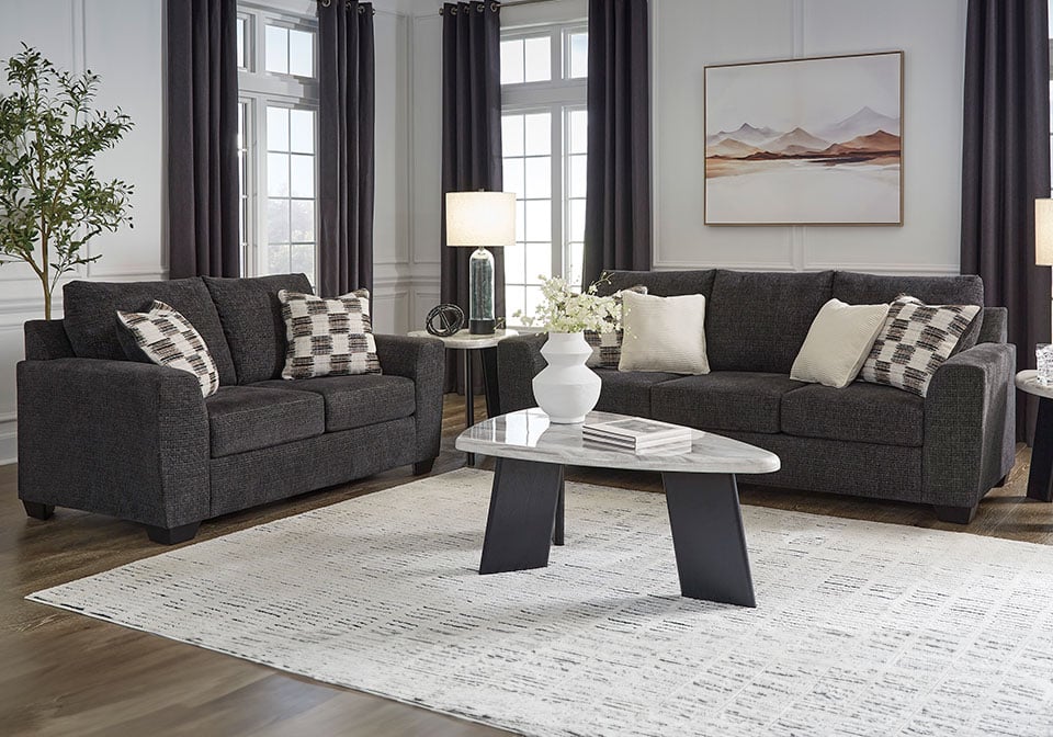 This Series personifies contemporary comfort. Its clean-lined frame and neutral color lend must-have versatility. Softly textured fabric makes it that much more inviting. A welcome combination of chic style and a cozy feel, this piece completes your living room with modern flair.