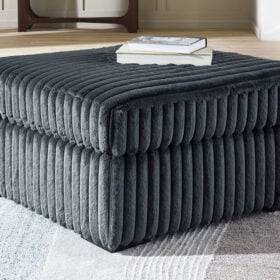 Wrapped in luxuriously soft jumbo corduroy, this oversized accent ottoman takes cozy and inviting to a higher level. The sumptuous piece is perfect for unwinding after a long day, with an exceptionally textured cushion that delivers pure indulgence. Now all you have to do is kick back, sink in and relax.