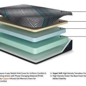 Discover the luxury of this memory foam queen mattress. Temperature-regulating material in the stretch knit cover keeps you at a comfortable temperature all night long. Gel memory foam and high-density support foam conform to your body, delivering pressure relief and comfort. And a green tea-infused support foam base provides enhanced stability.