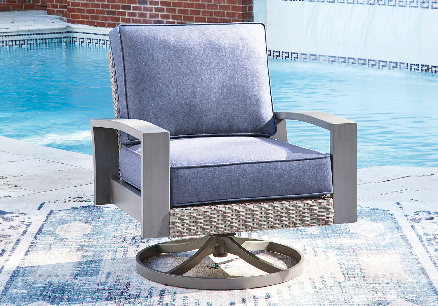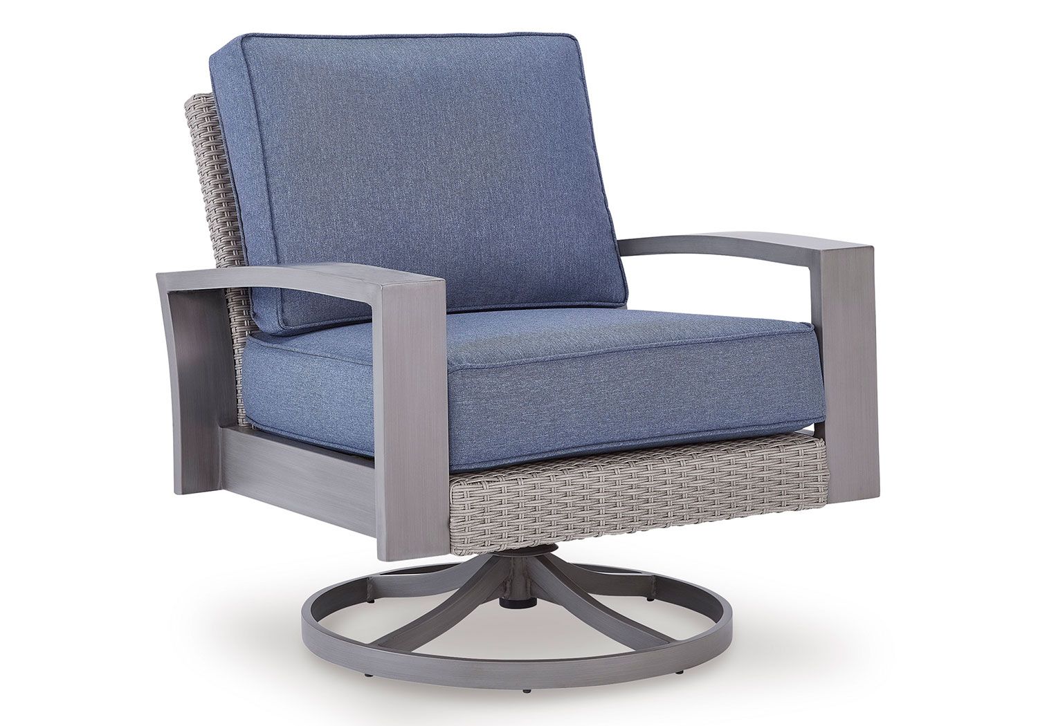High style crafted for low-maintenance living. Turn your outdoor space into a sweet retreat with this swivel rocker lounge chair. The casually cool piece entices with easy-breezy gray resin wicker over an all-weather aluminum frame, for an upscale aesthetic that’s downright durable. Wrapped in high-performance Nuvella® fabric, the plush cushions are indulgently comfortable yet so easy to maintain. Lounge on.