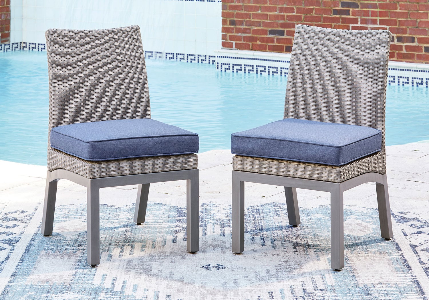Chairs with All-weather wicker brings durability to a traditional woven wicker look. Hand-applied, wood-look paint finish. Solution-dyed high-performance fabric. Nuvella is an outdoor fabric that can be cleaned and offers enhanced UV resistance. Foam cushion core wrapped in soft polyester for a low-maintenance, comfortable cushion.