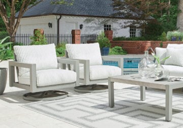 Indulge in luxe outside living without sacrificing longevity. This outdoor swivel chair combines on-trend texture with a sleek aluminum frame. Soak up the sun poolside or on the porch—a 360-degree swivel allows you to effortlessly turn to chat with guests or look after the kids. And with cleanable, UV-resistant Nuvella® fabric in a showstopping corded look, style and durability go hand in hand.