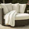 - Zippered cushions and throw pillows covered in solution-dyed high-performance fabric