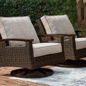 Looking for that special spot to relax and entertain on your deck or patio? Then you’ll love the Drakes Beach outdoor swivel rocker lounge chair. With beautifully textured resin wicker over a sturdy aluminum frame, it brings so much style and warmth to your outdoor space. The thick, comfortable cushions are covered in cleanable, UV-resistant Nuvella® fabric, so you can spend less time worrying and more time chilling. What a smart and stylish way to create a beautiful, lasting space for everyone to enjoy.