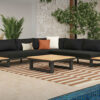 Clean lines and contemporary style define this cocktail table, featuring a warm wood top paired with a sleek metal frame thoughtfully fashioned to prevent the pooling of water. Its low-profile design offers a spacious surface, making it perfect for entertaining, relaxing, and enhancing any modern indoor or outdoor seating area.
