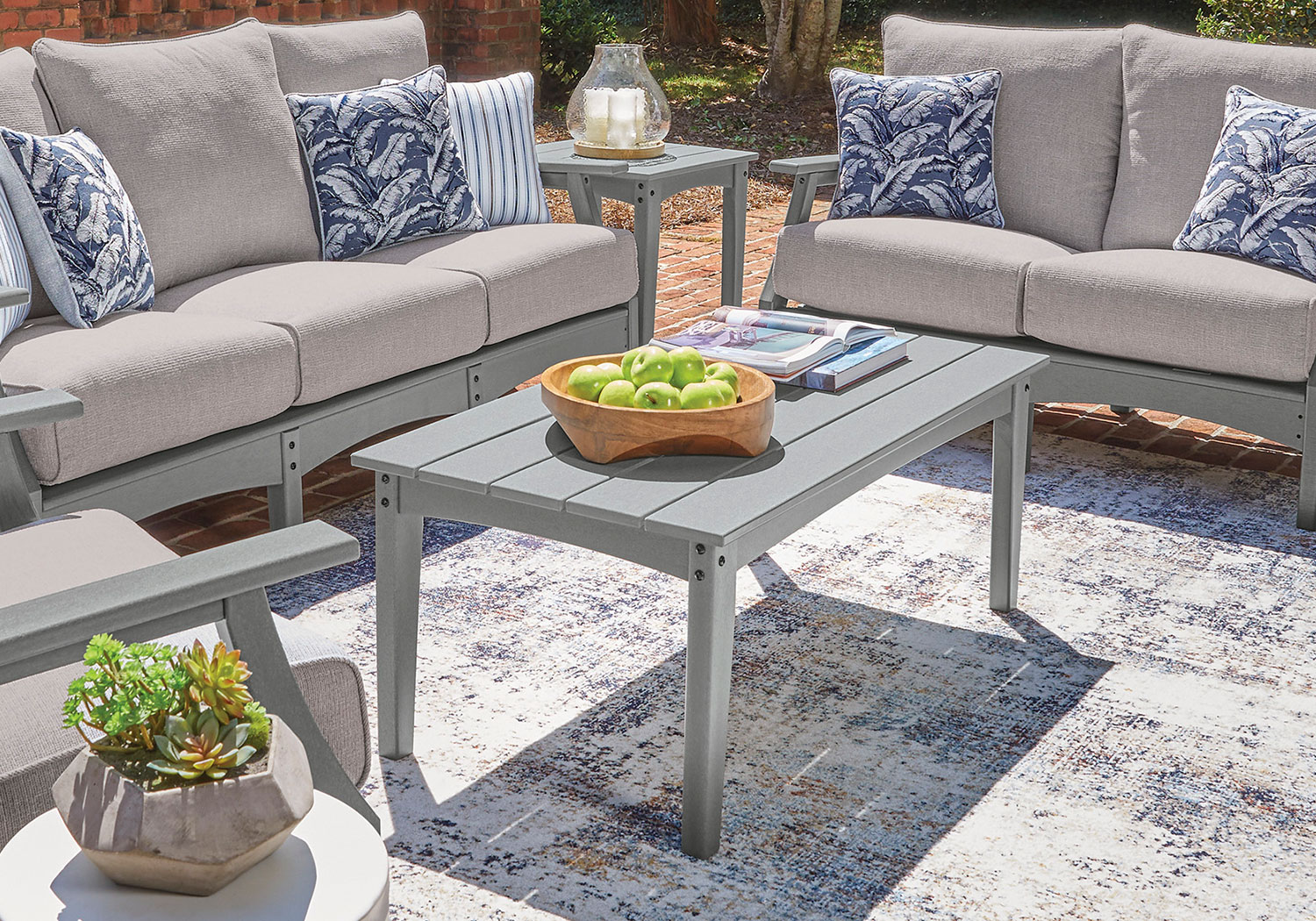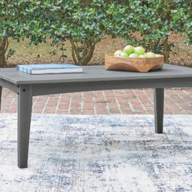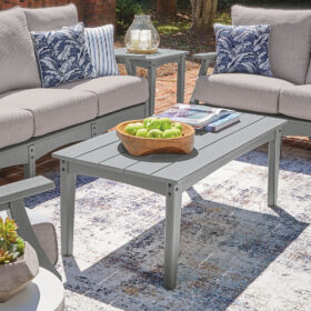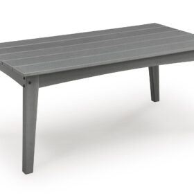 This outdoor coffee table prioritizes versatile style and comfort, all while providing the durability you need alfresco. Crafted of a sturdy, wood-look material, it withstands the elements with ease. A slatted design that sheds rainwater rounds out the piece with added function.