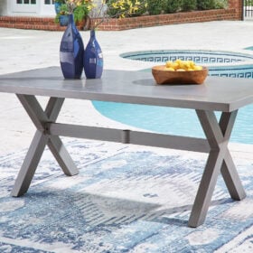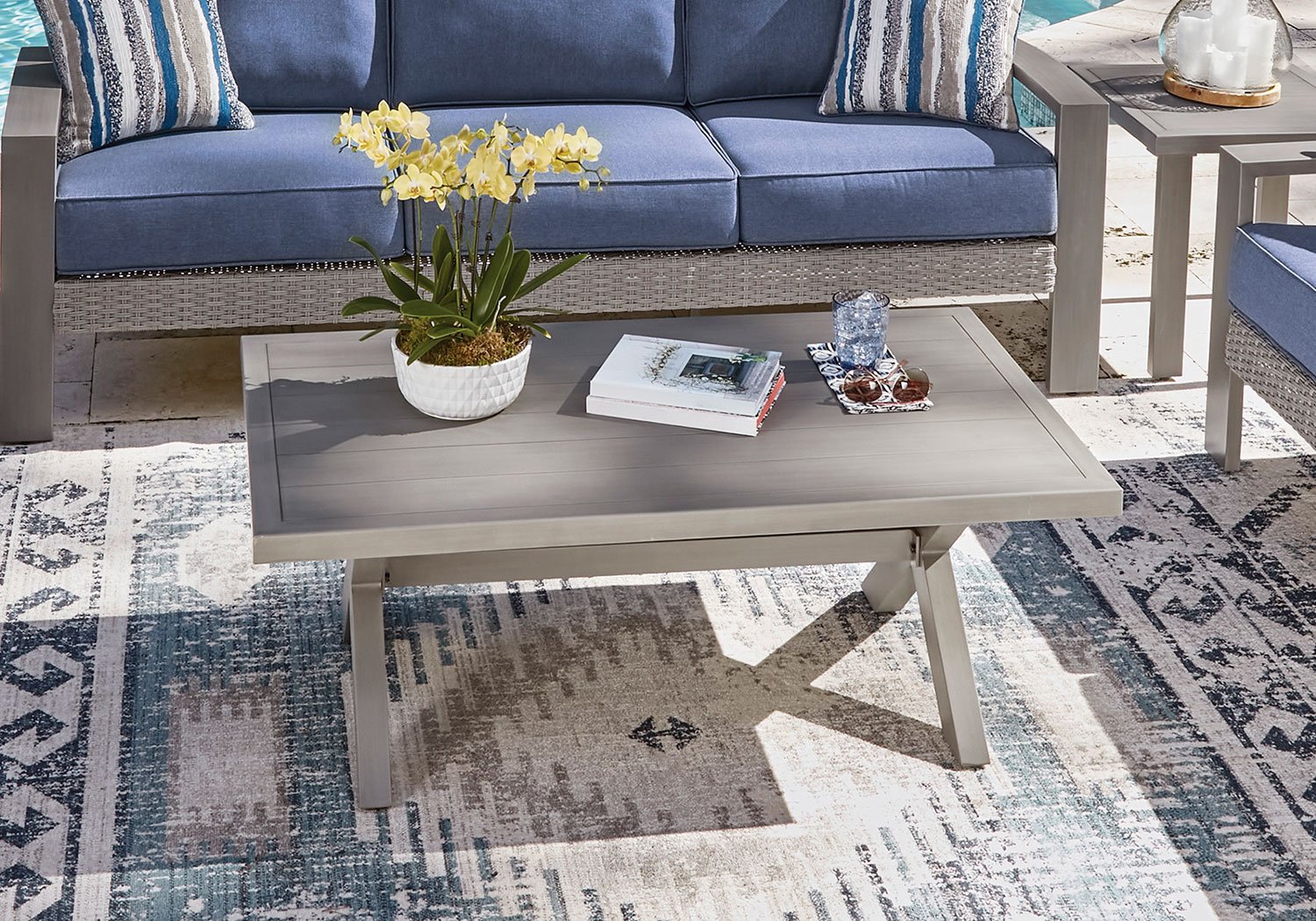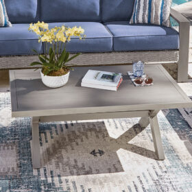High style crafted for low-maintenance living. Turn your outdoor space into a sweet retreat with this coffee table. The casually cool piece entices with an all-weather aluminum frame in an easy-breezy gray finish, for an upscale aesthetic that’s downright durable. Gather round for morning libations, cocktails or game night in the great outdoors.