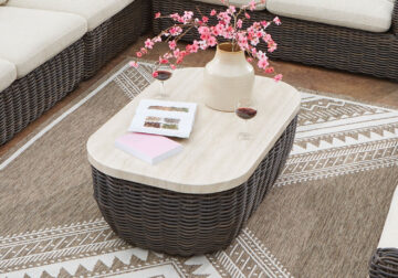 - All-weather resin wicker handwoven over rust-resistant aluminum frame with durable powder coated finish
