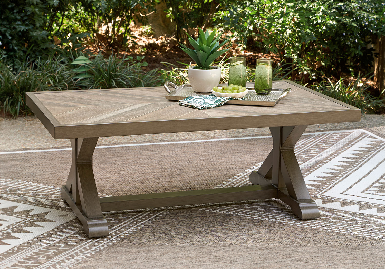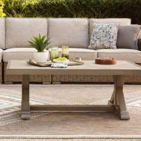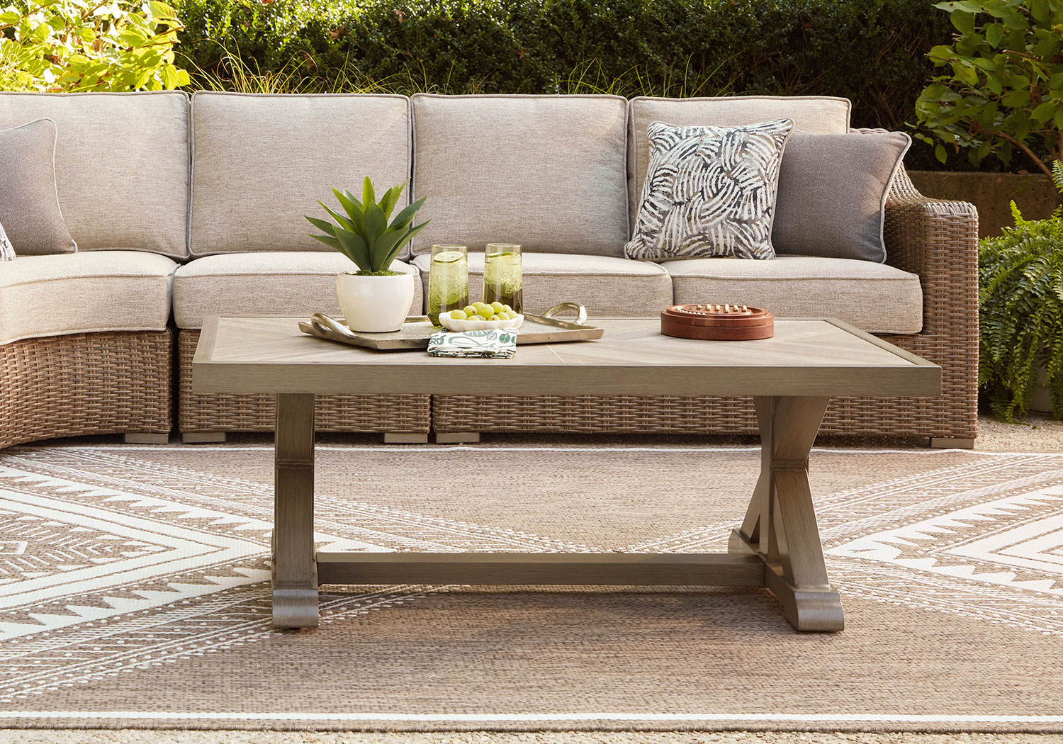 Who says the great outdoors isn’t made for luxury living? This outdoor coffee table offers all of the high-end design and durability you could ask for, and then some. Its all-weather, rust-resistant aluminum frame provides the easy-breezy look you love without the high maintenance. Rest assured—with this table, you can focus less on upkeep and more on relaxation.