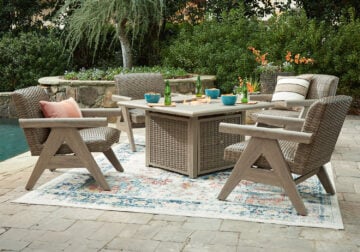 Who says the great outdoors isn’t made for luxury living? This outdoor dining Series offers all of the high-end design and durability you could ask for, and then some. Its all-weather, rust-resistant aluminum frame provides the easy-breezy look you love without the high maintenance. Rest assured—with this Series, you can focus less on upkeep and more on relaxation.