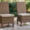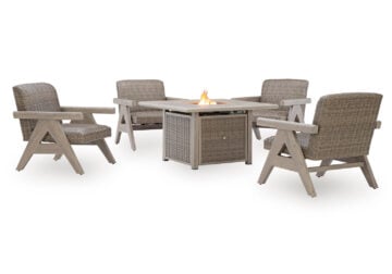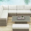 All-weather resin wicker handwoven over rust-resistant aluminum frame with durable powder coated finish. Solution-dyed high-performance fabric. Nuvella is an outdoor fabric that can be cleaned and offers UV resistance.