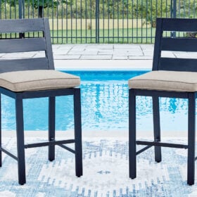 Easy-breezy beauty, made to withstand the elements. This outdoor counter height bar stool, in a soothing shade of blue, makes a serene statement on your deck or patio. A cushioned seat keeps you comfy as you lounge. Crafted with durable materials for added longevity, it’s a smartly stylish addition to your outdoor oasis.