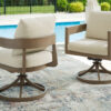 Chairs with All-weather wicker brings durability to a traditional woven wicker look. Hand-applied, wood-look paint finish. Solution-dyed high-performance fabric. Nuvella is an outdoor fabric that can be cleaned and offers enhanced UV resistance. Foam cushion core wrapped in soft polyester for a low-maintenance, comfortable cushion.