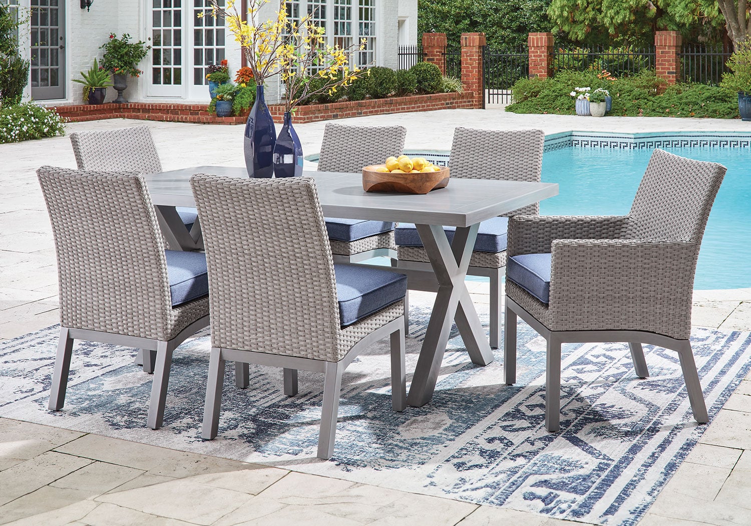 High style crafted for low-maintenance living. Turn your outdoor space into a sweet retreat with this dining Series. The casually cool piece entices with an easy-breezy gray finish over an all-weather aluminum frame, for an upscale aesthetic that’s downright durable. Gather round for mealtime, cocktails or game night in the great outdoors.