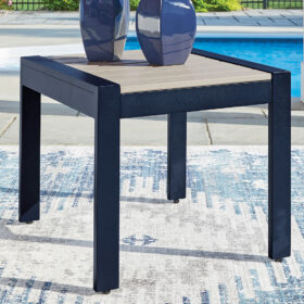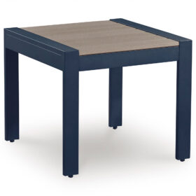 Easy-breezy beauty, made to withstand the elements. This outdoor end table makes a serene statement with its soothing shade of blue and contrasting wood-look top. Crafted with durable materials for added longevity, it’s a smartly stylish addition to your outdoor oasis.