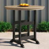 Discover a high style alternative to traditional outdoor furniture. With its antiqued teak-like finish, this solid wood end table definitely has the corner on style. Better yet, it has the edge when it comes to affordability. For that much more weather protection, the table’s eucalyptus wood frame with slat styling is treated to a 5-step finishing process.