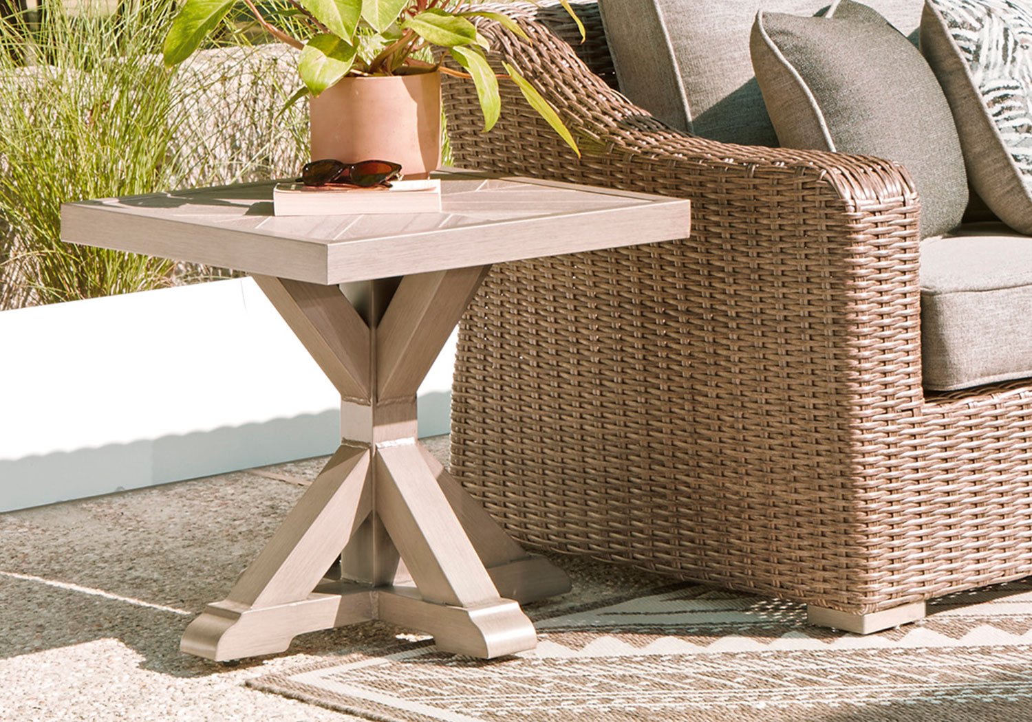Laguna Heights Beige Outdoor Square End Table