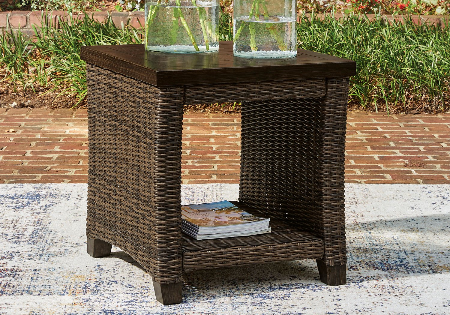 Looking for that special spot to relax and entertain on your deck or patio? Then you’ll love this outdoor end table. With beautifully textured resin wicker over a sturdy aluminum frame, it brings so much style and warmth to your outdoor space. And the hand-brushed, wood-look finish means you can spend less time worrying and more time chilling. What a smart and stylish way to create a beautiful, lasting space for everyone to enjoy.