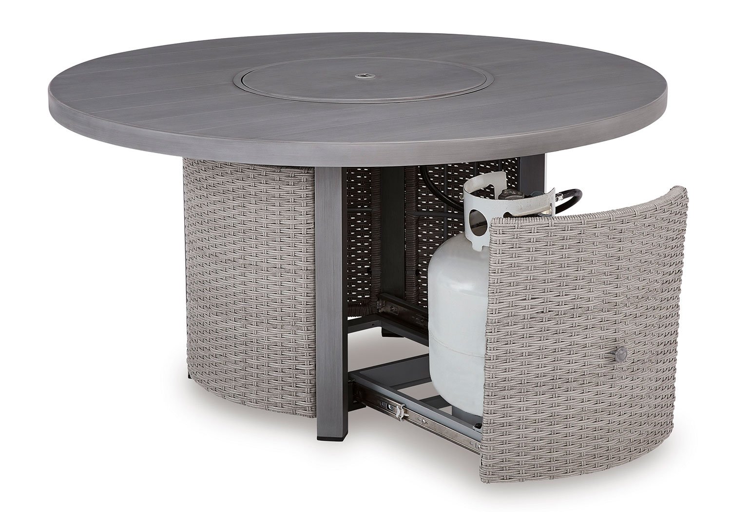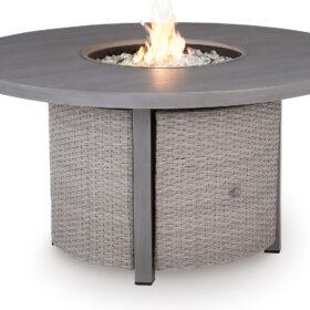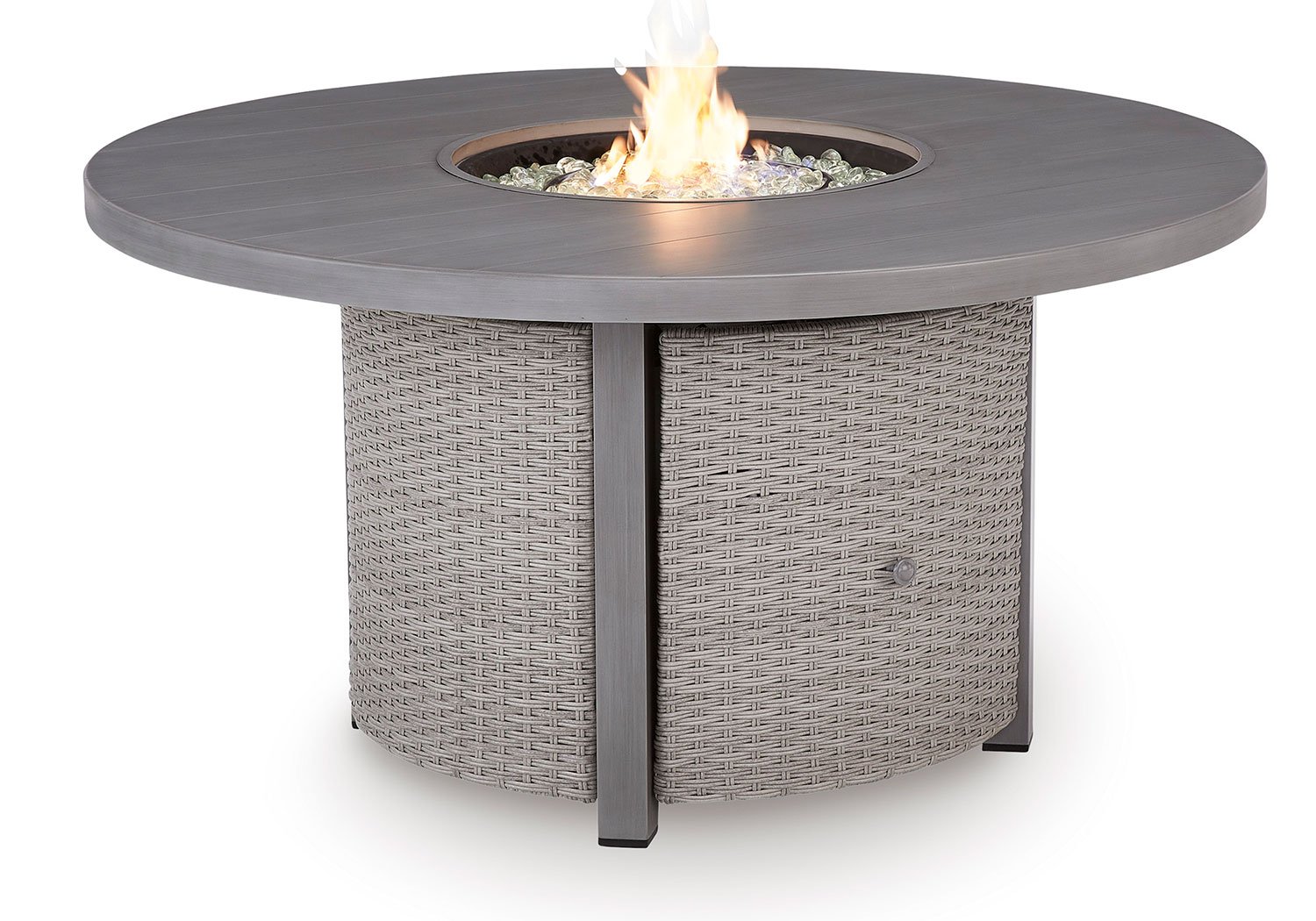 High style crafted for low-maintenance living. Turn your outdoor space into a sweet retreat with this fire pit table. The casually cool piece entices with easy-breezy gray resin wicker over an all-weather aluminum frame, for an upscale aesthetic that’s downright durable. A stainless steel burner with glass beads adds a captivating element sure to wow. Gather round for mealtime, morning coffee chats or cocktails in the great outdoors.
