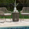 Indulgently comfortable furniture shouldn’t be limited to inside spaces. Create your own outdoor oasis with this 5-piece outdoor ensemble. It’s a study in form and function, with clean-lined, durable aluminum frames that are ready for many seasons of fun in the sun. Plush lounge chair and loveseat cushions wrapped in high-performing Nuvella® fabric are comfortable and carefree, while sintered stone tabletops lend an air of natural elegance.