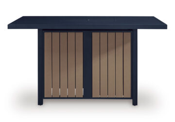Easy-breezy beauty, made to withstand the elements. This outdoor bar table with fire pit makes a serene statement with its soothing shade of blue and contrasting wood-look cabinets. An integrated fire pit in the top adds a perfectly cozy vibe. Crafted with durable materials for added longevity, it’s a smartly stylish addition to your outdoor oasis.